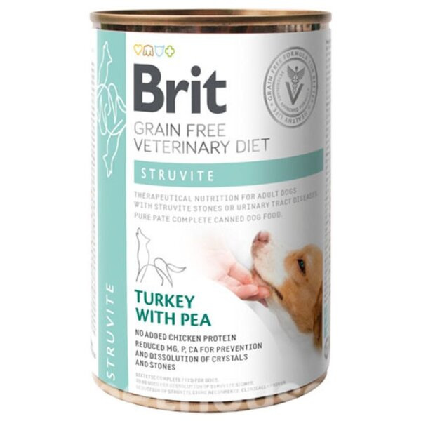 Използвайте Brit VD Struvite Dog въз основа на анализ на урината за период до 6 месеца, за да предотвратите повторната поява на струвитни камъни. Редовно проверявайте целевото pH на урината (6,2–6,4)