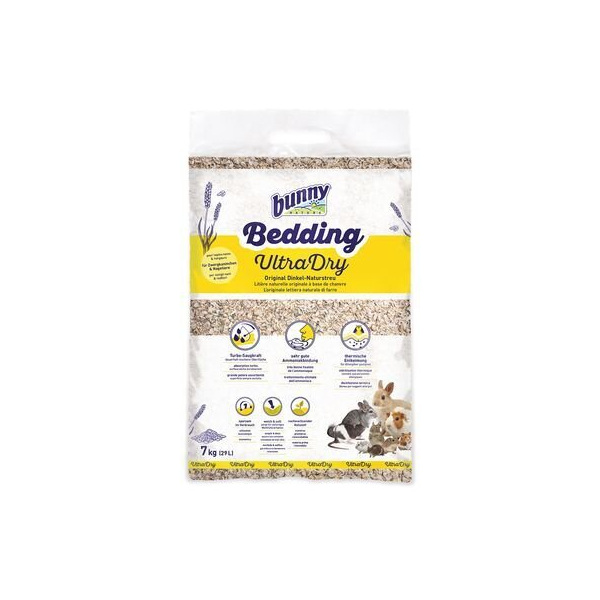 Насипи и се чувствай по-добре! Новата BunnyBedding Ultra Dry се състои от качествена спелта, специално подготвена, за да се чувстват животните комфортно. BunnyBedding Ultra Dry е с високи абсорбционни свойства и приятно мека. Идеална постеля за много от дребните бозайници.