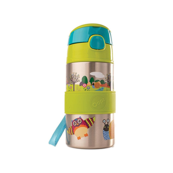 Бутилка за вода със сламка, Oops, Неръждаема стомана, Зелена, 400ml
