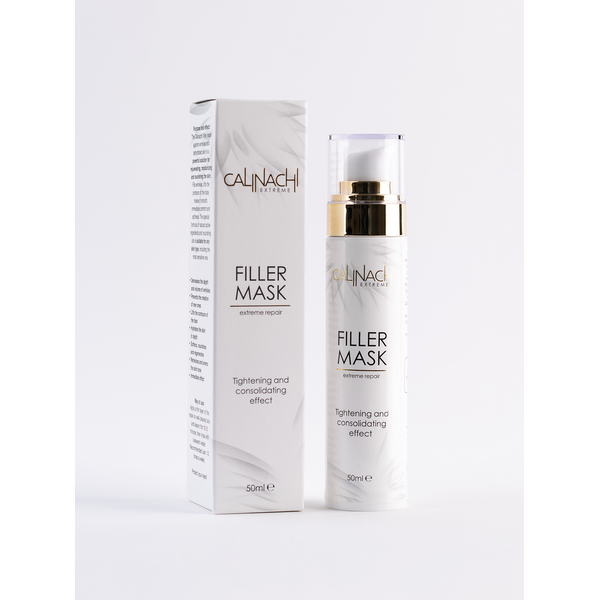 Предназначение и действие: Филър маска срещу бръчки и дехидратирана кожа Calinachi Filler Mask е мощно решение за подмладяване, овлажняване и подхранване на кожата. Запълва бръчките, повдига контурите на лицето, придава гладкост, незабавен комфорт и мекота. Специалната формула от натурални активни съставки и подхранващи масла е подходяща за всеки тип кожа, включително и най-чувствителната.