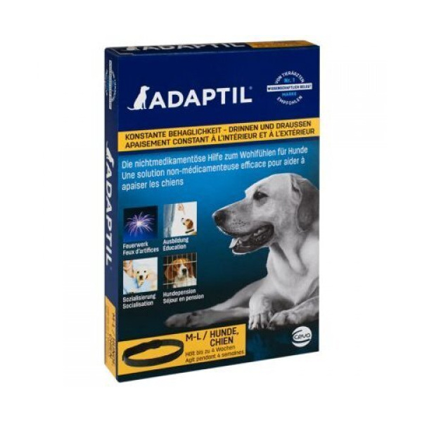 Успокояващата каишка за кучета Adaptil съдържа ефективни феромони, които действат положително и успокояващо на кучета в стресови ситуации. Използваните феромони са синтетичен аналог на естествените феромони, които се образуват по млечните жлези на женското куче след раждането на малките кученца. По време на неговите откривателски експедиции през първите седмици след раждането му, кученцето постоянно търси контакт с майка си, чийто феромони по млечните жлези го успокояват и стабилизират емоционално. Този успокояващ ефект се наблюдава както при малки кученца, така и при пораснали кучета. За по-малко стрес, страх и тъга. Каишката Adaptil може да се прилага при наличие на следните типични признаци на стрес и уплаха: свита стойка на тялото, спотайване, треперене причинени от стрес понижени активност и желание за игра причинено от стрес намаляване на поеманата храна агресивно поведение, продължително виене или лаене ексцесивно близане на лапите или други части на тялото Приложение: Поставете каишката на врата на кучето и нагласете необходимата дължина. Отрежете излишното парче от каишката. Успокояващият ефект на каишката Adaptil продължава около 4 седмици. Забележка: Моля сваляйте каишката преди всяко къпане и я поставяйте отново, едва когато козината е напълно суха. Мократа каишка Adaptil не отделя феромони. Не използвайте каишката Adaptil за кучета с големи рани в участъка на шията. Отворете опаковката непосредствено преди да поставите каишката. Съхранявайте на недостъпно за деца място. Моля имайте предвид: Adaptil се доставя в опаковка с описание на френски език.