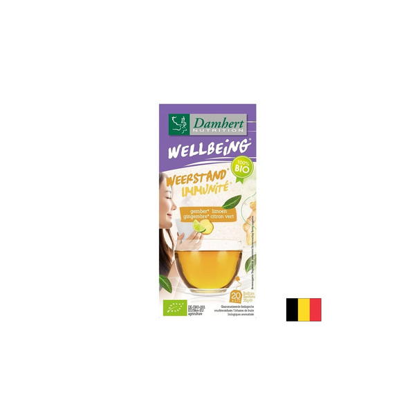 Weerstand/Immunité на белгийската фирма Damhert NV е билков чай с внимателно подбрана комбинация от натурални съставки от контролирано био сертифизирано земеделие като джинджифил, кора от лайм, ройбос и ябълка, къпинови листа, женско биле и натурални цитрусови аромати. Има силно изразени антиоксидантни и противовъзпалителни свойства, подобрява имунитета, допринася за повишаване защитните сили на организма и подпомага цялостното благосъстояние на организма. Чаят спомага за облекчаване на симптомите при настинки и грип и има освежаващ вкус с лимонова нотка и мек загряващ ефект от джинджифила. Не съдържа кофеин, изкуствени добавки, ароматизатори и консерванти. Подходящ е за всекидневен прием, особено през есенно-зимния сезон и периоди с повишен риск от инфекции.