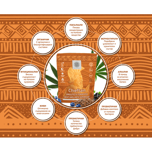 Chieftain е функционална храна, предназначена за жизненост, енергиен баланс, устойчивост и сила на мъжете.