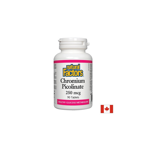 Хром пиколинатът на Natural Factors увеличава действието на инсулина, метаболизира глюкозата и помага за поддържане на балансирани нива на кръвната захар. Много голяма част от хората в Западния свят страдат от дефицит на хром, а приемът на добавки с лесно абсорбируем хром пиколинат осигурява адекватни нива на хром, поддържа баланса на кръвната захар и намалява поривите за храна. Дефицитът на хром може да доведе до повишени нива на кръвна захар и инсулин и увеличен риск от диабет. Неадекватният прием на хром е свързан с увеличени нива на лошия холестерол и триглицеридите и намалени нива на добрия холестерол, фактори, които увеличават риска от сърдечно-съдова болест.