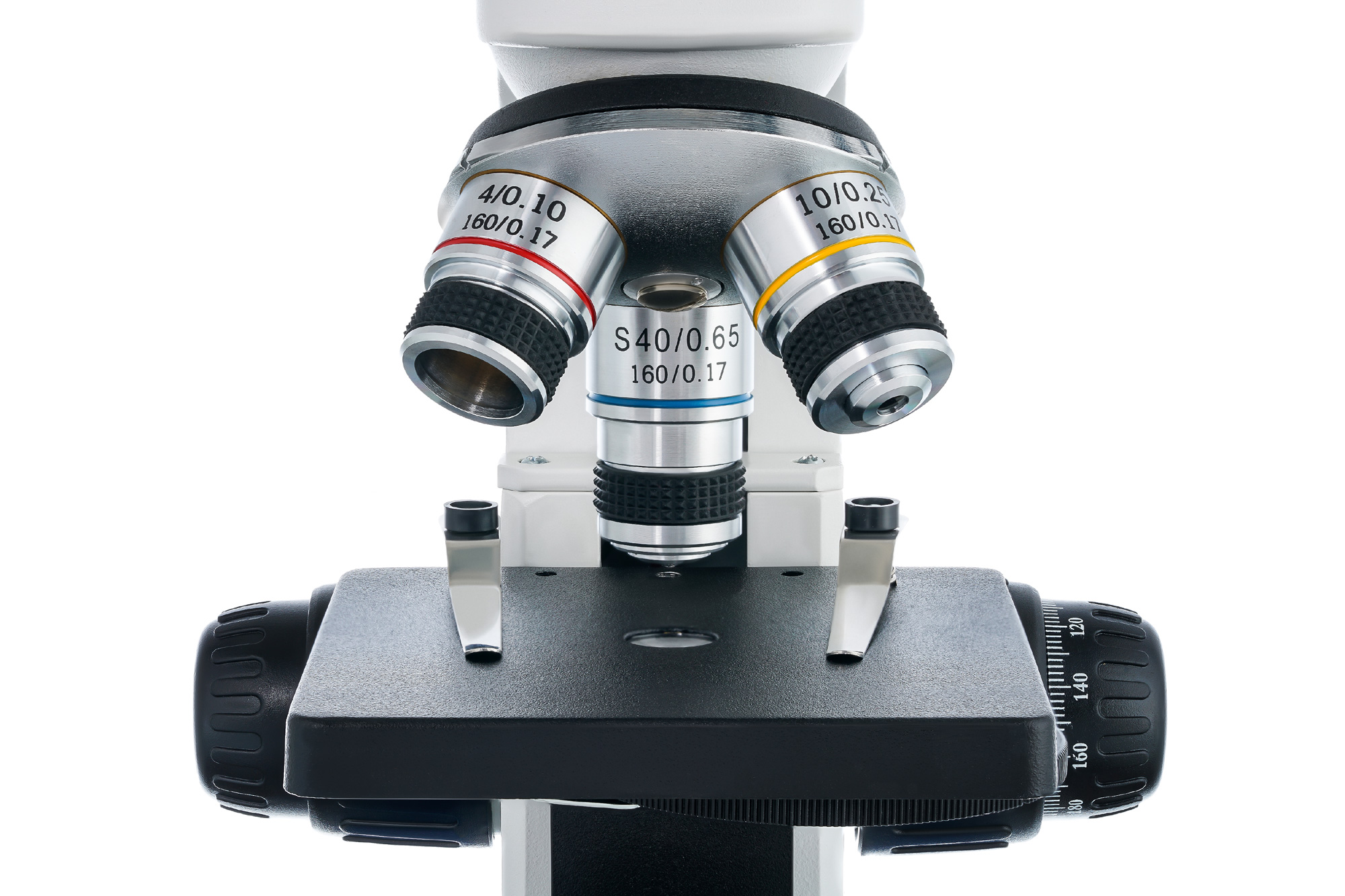 Всички оптични елементи на микроскопа са произведени от стъкло. Корпусът е изработен от метал.