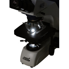 <p>Образците се фиксират на предметна маса, оборудвана с механична скала. Предметната маса може да се движи по две оси. Под предметната маса има осветителен модул, който включва халогенна лампа с регулиране на яркостта. Има и кондензер Abbe, който е оборудван с ирисова диафрагма. Лампата е с променливотоково захранване.</p>