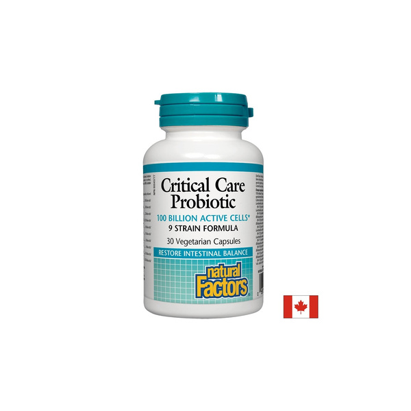 Пробиотикът Critical Care Probiotic на Natural Factors включва 9 щама бифидобактерии и 4 щама лактобацили, които осигуряват мощна защита на стомашно-чревната и имунната система.Тази формула бързо възстановява разнообразната микрофлора след употребата на антибиотик. Всеки щам бактерии в тази формула е устойчив на стомашната киселина, което позволява на пробиотиците да достигнат до червата в пълния си потенциал. Във всяка капсула има гарантирано количество от 55 милиарда активни клетки.