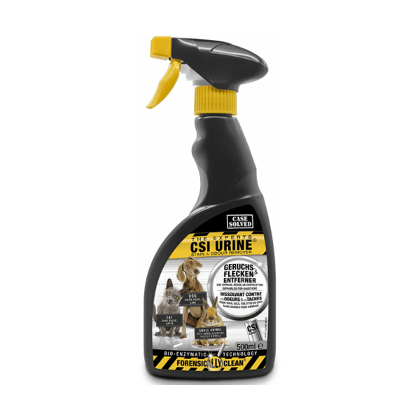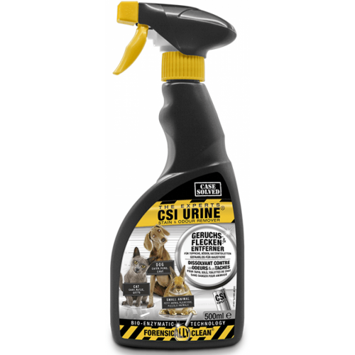 CSI Urine Spray се използва в професионалния сектор повече от 20 години - в клетките на полицейските кучета, болниците и заведенията за хранене. CSI Urine Spray не само ще почисти новите изцапвания, но се справи и със стари петна и наслоени миризми, за да помогнете за предотвратяване на повторно маркиране.