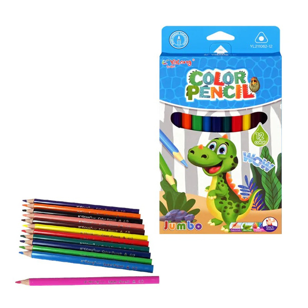 Цветни Джъмбо моливи "Дино" - 12 цвята /6 опаковки в стек - микс/.