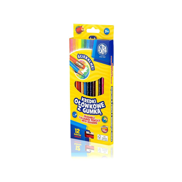 Комплект цветни моливи, Astra, С гума, 12 цвята