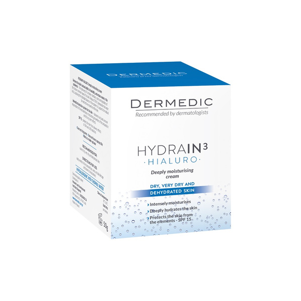 HYDRAIN³ HIALURO ДЪЛБОКО ХИДРАТИРАЩ КРЕМ SPF 15 Възвръща естествената хидратантна функция на кожата и подсигурява вода в епидермиса - Hydroveg VV комплекс осигурява оптимална хидратация на роговия слой на кожата. Намалява трансепидермалната загуба на вода и осигурява хидролипиден баланс на епидермиса. Подпомага естествените био-защитни свойства на кожата . Благодарение на интензивната хидратираща система - Хиалуроновата киселина и уреа , продукта притежава изключителните хидратиращи свойства и дълготраен ефект. SPF 15 - предпазва кожата от вредните ефекти на UVA и UVB радиацията. Не запушва порите Не оставя мазен слой Идеален като основа за грим Препоръчва се за грижа за суха, много суха и дехидратирана кожа Начин на употреба : нанесете равномерно върху почистена кожа на лицето, шията и деколтето и оставете да попие. ХИПОАЛЕРГЕНЕН С ТЕРМАЛНА ВОДА