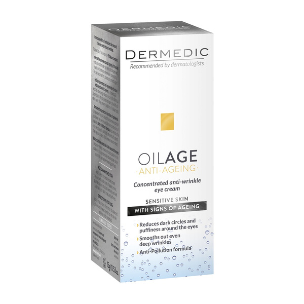 OILAGE КОНЦЕНТРИРАН ОКОЛООЧЕН КРЕМ ПРОТИВ БРЪЧКИ Мигновен ефект на ревитализирана кожа около очите и намалени бръчки Тройно действие на иновативния TriOleum комплекс: Oбръща перименопаузалното стареене на кожата - изофлавони стимулират синтезиса на колаген и еластин и подсилват междуклетъчните връзки. Кожата става стегната, тонизирана и гладка отново. Видимо подмладява и регенерира кожата и забавя стареенето - витамини A,E и D от естествен произход подхранват в дълбочина кожата като защитават нейната цялостност и увеличават нейната способност да задържа вода. Те предотвратяват оксидацията на клетъчните липиди. Стимулира защитната функция на епидермиса - ненаситени мастни киселини и Niacinamide запълват дефицита на липидната бариера и стимулира производството на серамиди. Формулата срещу замърсяване помата на кожата да възстанови плътността и своята способност да се бори с негативното влияние на околната среда. Намалява подпухването и тъмните кръгове под очите - Hesperidine помага да се подобри микроциркулацията в епидермиса, така значително намалява тъмните кръгове около очите и елиминира подпухването. Намалява тъмните кръгове и подпухването около очите Изглажда дори дълбоки бръчки Формула против замърсявания от околната следа Препоръчва се за: нощна грижа за чувствителна кожа около очите с видими признаци на стареене (мимически, гравитационни и структурни бръчки ) и с тенденция към тъмни кръгове и подпухване Начин на употреба : Нанасяйте малко количество от крема върху почистена кожа около очите, нежно потупвайте в кожата и оставете да попие. КЛИНИЧНО ТЕСТВАН