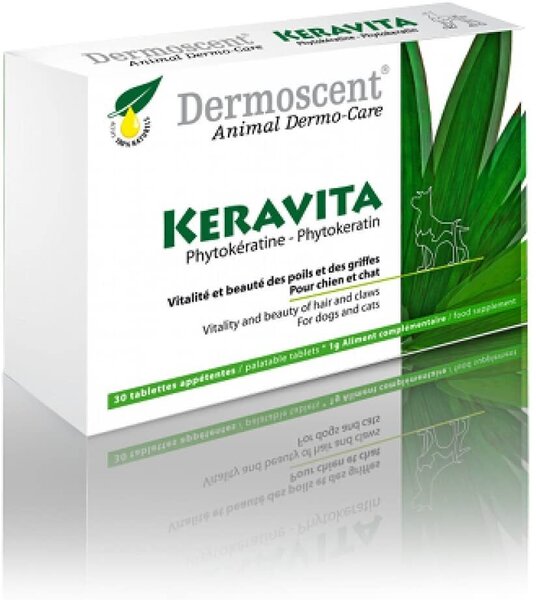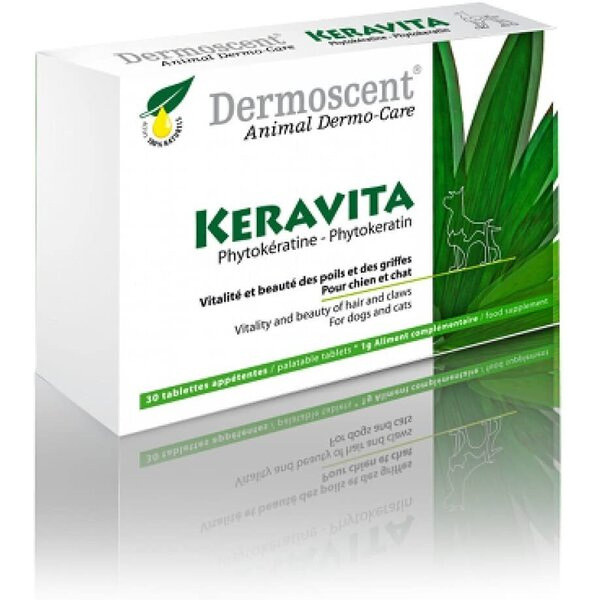 Keravita е хранителна добавка, обогатена с фитокератин и двойно действие, поддържащо здрави козината и ноктите на кучета и котки.