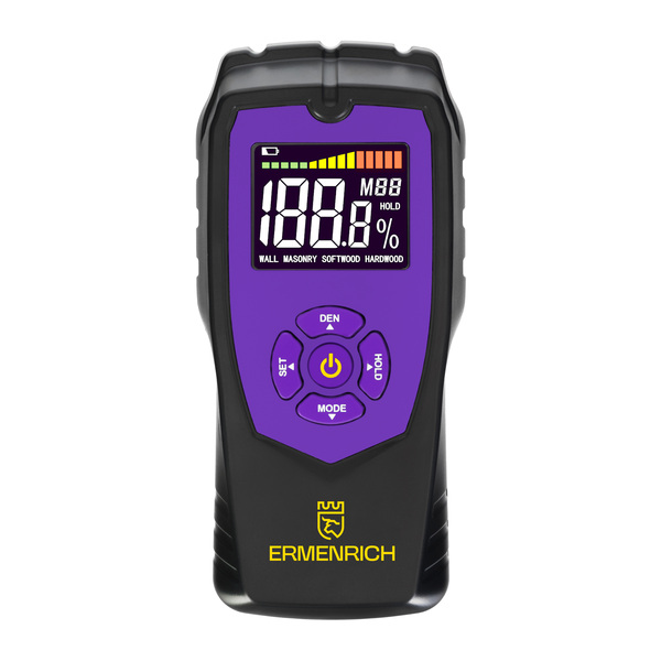 <p>Ermenrich Wett MW40 е детектор за влага (влагомер), който е без щифтове, което означава, че няма да повреди повърхността на измервания материал, докато отчита. Уредът може да работи върху материали от дърво, гипсокартон, бетон и др. Той е идеален за ежедневна употреба, ремонтни дейности в апартамента или вилата, както и в строителството и производството, в случай че трябва да измерите съдържанието на влага в материали, конструкции и продукти.</p>