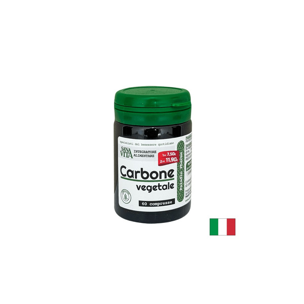 Sanavita Carbone Vegetale Compresse / Активен въглен 334 mg, 60 таблетки е хранителна добавка на Paladin Pharma, Италия