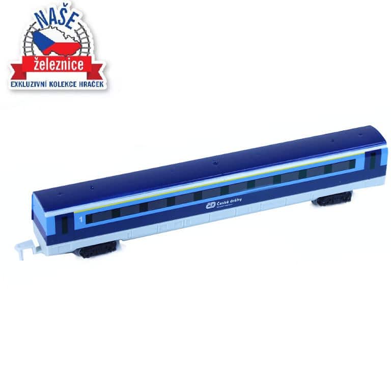 Резервен вагон за голям комплект - влак на Чешките железници. С този резервен вагон влакът на Чешките железници може да бъде удължен. Може да се комбинира с влака RegioJet и всички комплекти релси от серия "Нашите железници!.