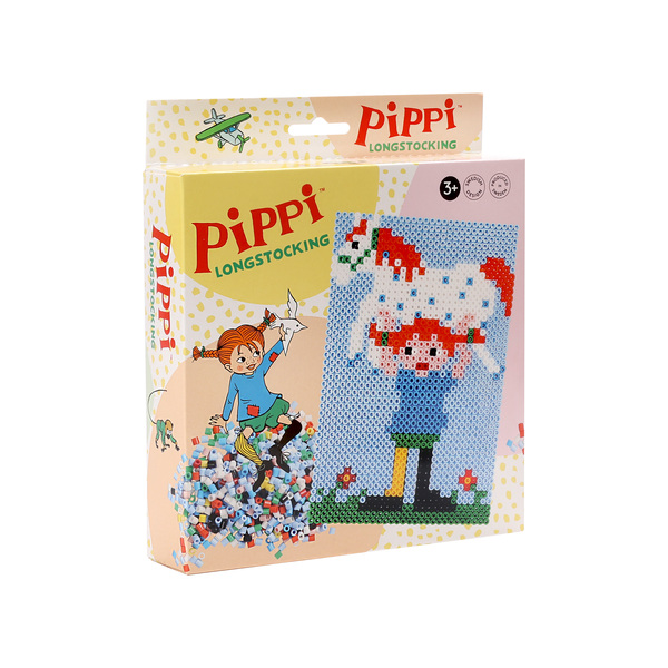 Създавайте картини с мъниста с Пипи! Добавете и създайте красиви мотиви на Пипи, когато тя носи Малкия приятел над главата си. Комплектът съдържа 2000 пластмасови мъниста, 2 големи основи и цветни печатни примери за картинки. Включва също хартия за гладене и инструкции как да гладите плочата с мънистата. Пипи - Играйте с най-силното момиче в света! Не е чудно, че Пипи е любимката на много деца. Историите на Астрид Линдгрен за Пипи Дългото чорапче продължават да забавляват децата, а класическите илюстрации на Ингрид Ванг Найман дават на играчките игрив живот.