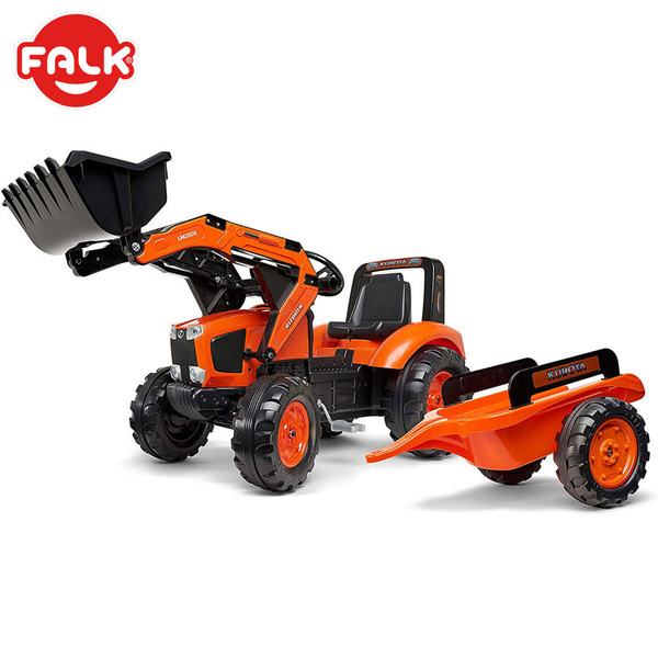Детски багер Kubota с ремарке, кофа и педали - оранжев
