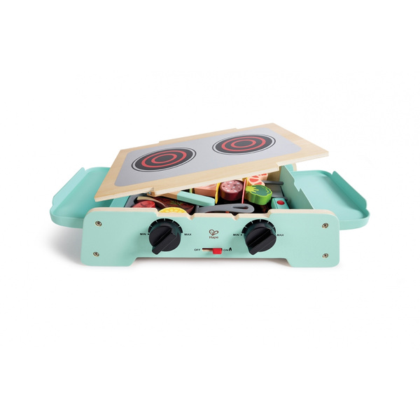Детски дървен комплект, Hape, Барбекю и скара с аксесоари и звуци, 24части