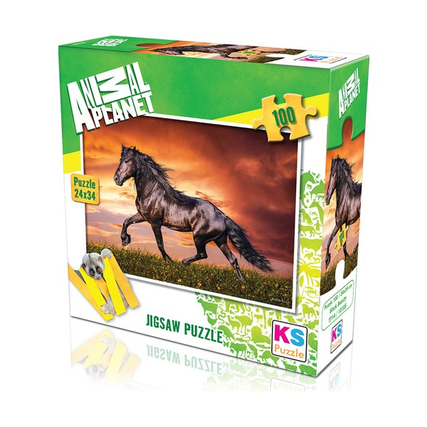 Детски пъзел "Черен кон" от серия на ANIMAL PLANETРеденето на пъзел провокира развитието на креативното и логическо мислене.Пъзелите от серията на ANIMAL PLANET са и образователни.Любимите животни на децата ще ги мотивират да наредят пъзела сами и да се зароди още по-голям интерес към тези игри.Размер на кутията: 15 * 15 * 5 смРазмер на пъзела (Сглобен) : 24 * 34 смБрой части: 100