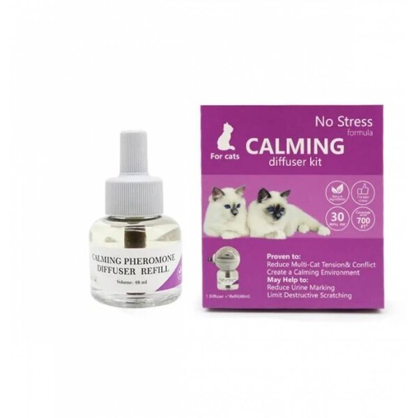 Пълнителят на дифузерът съдържа: Котешки феромон F3- 2% Базово масло:48 мл.