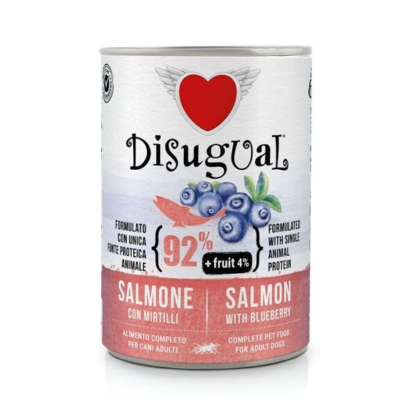 риба и рибни субпродукти (сьомга 92%), плодове (боровинки 4%), минерали, захари.