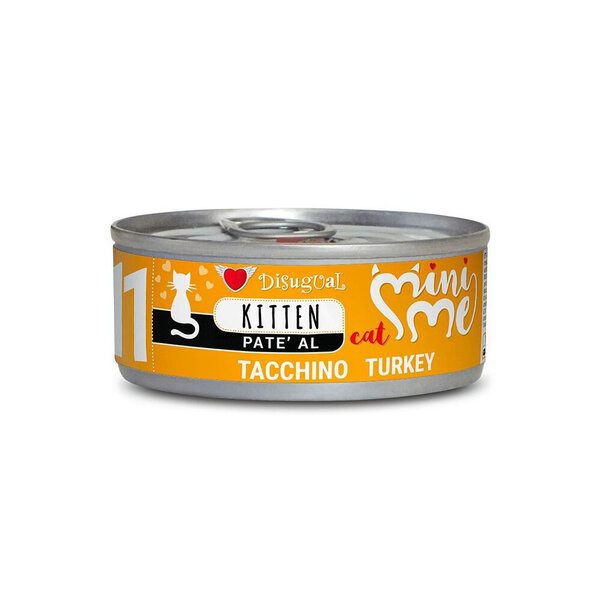 Disugual MiniMe Kitten е пълноценна богата на пуешко храна за котенца от 3 месеца до 1 годинка.Пастета е приготвен с 94% месо годно за човешка употреба.• Без ГМО;• Без изкуствени консерванти, оцветители или подобрители на вкуса;• С добавени пребиотици и естествени антиоксиданти.
