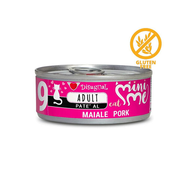 Disugual MiniMe Cat е пълноценна богата на свинско храна за отраснали котки от всички породи и възрасти.Пастета е приготвен с 96% месо годно за човешка употреба.• Без ГМО;• Без изкуствени консерванти, оцветители или подобрители на вкуса;• Без глутен.