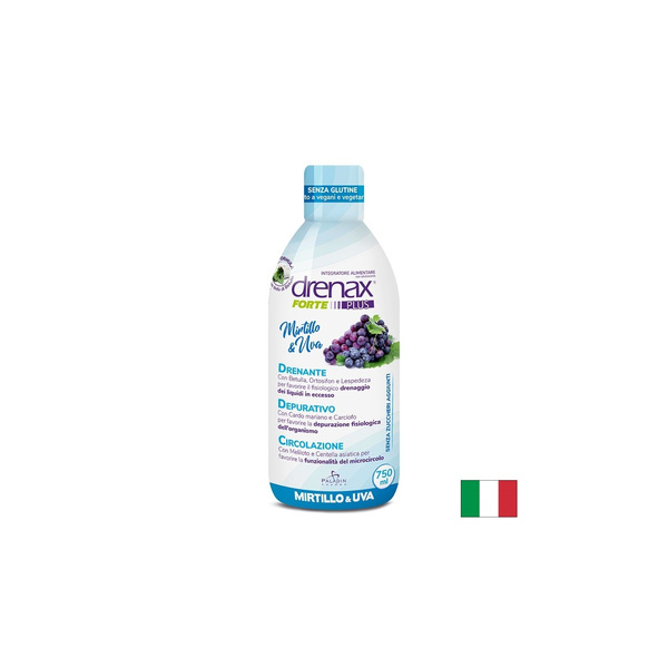 Drenax Forte Plus Mirtillo & Uva - Дренакс Форте+ Боровина и Гроздово семе (против задържане на течности) е хранителна добавка в течна форма, която съдържа растителни екстракти от бреза, синя боровинка, гроздово семе, артишок и бял трън и подкрепя нормалното състояние на черния дроб и отделителната система. Подпомага функциите на черния дроб и насърчава неговата детоксикация. Грижи се за здравето на отделителната система, спомага за елиминирането на излишната вода от тялото и насърчава нормалния баланс на течности в организма. Освен това допринася за естествената детоксикация на организма, осигурява антиоксидантна защита на клетките, насърчава отслабването и подпомага поддържането на нормално телесно тегло.