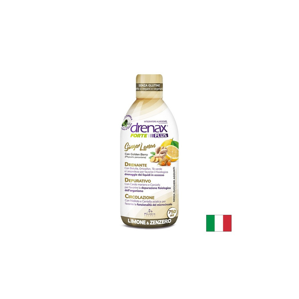Drenax® Forte Plus Ginger Lemon - Дренакс Форте Плюс (Бъбреци и отделителна система) е хранителна добавка под формата на напитка, която допринася за поддържане нормалното функциониране на бъбреците и отделителната система. Формулата, базирана на сок от бреза и растителни екстракти като артишок, бял трън, сладка детелина и джинджифил спомага за пречистване на организма от токсини, действа като диуретик, насърчава честото уриниране с цел отвеждане на излишната вода от организма и спомага за предотвратяване образуването на песъчинки в бъбреците. Подпомага нормалното функциониране на отделителната система, подкрепя работата на бъбреците и спомага за детоксикация на черния дроб. Има приятен вкус на лимон и джинджифил, не съдържа глутен в състава си и е подходяща за прием както от вегетарианци, така и от вегани.