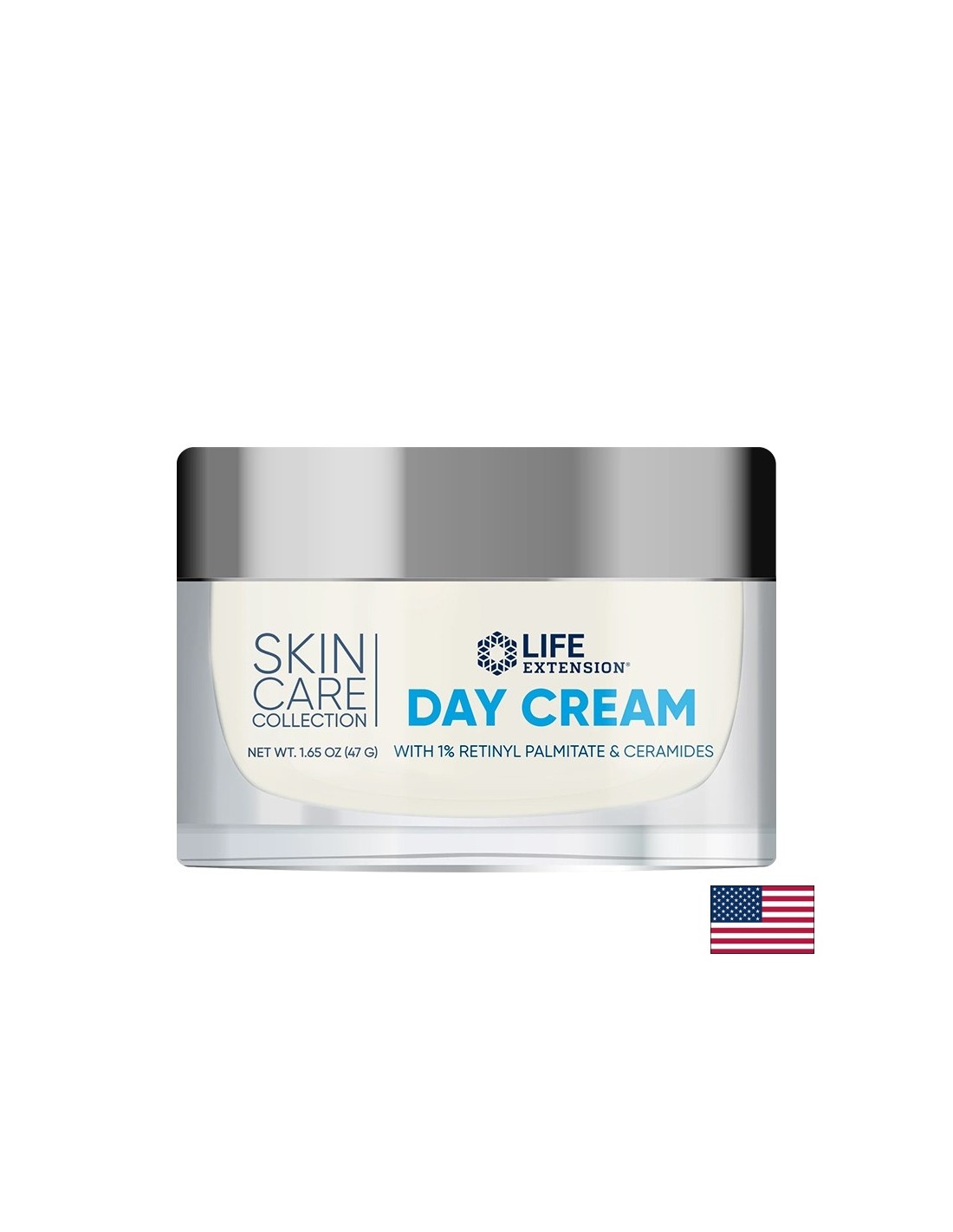 Дневен крем за лице с ретинил и серамиди на американската компания Life Extension за редуциране на фините линии и бръчки и забавяне процеса на стареене на кожата.