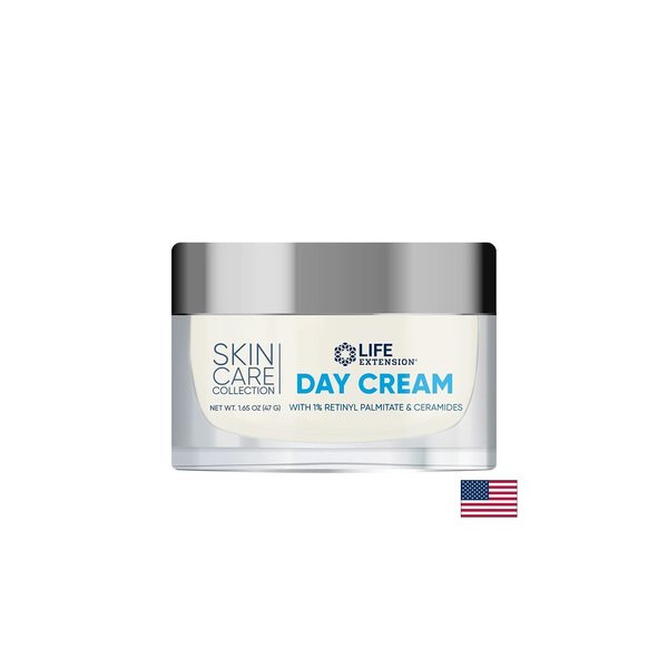 Лицата ни често разкриват възрастта и здравословното ни състояние. Иновативните биоактивни съединения могат да осигурят подкрепа за кожата ни, като например нашият дневен крем Skin Care Collection на Life Extension, който действа като „мултивитамин“ за кожата. Този дневен крем осигурява научнообосновани растителни съставки с ретинил палмитат (1,0 %) и серамиди (0,5 %), които подпомагат производството на колаген, регенерацията на клетките, хидратацията и намаляването на признаците на стареене на кожата.