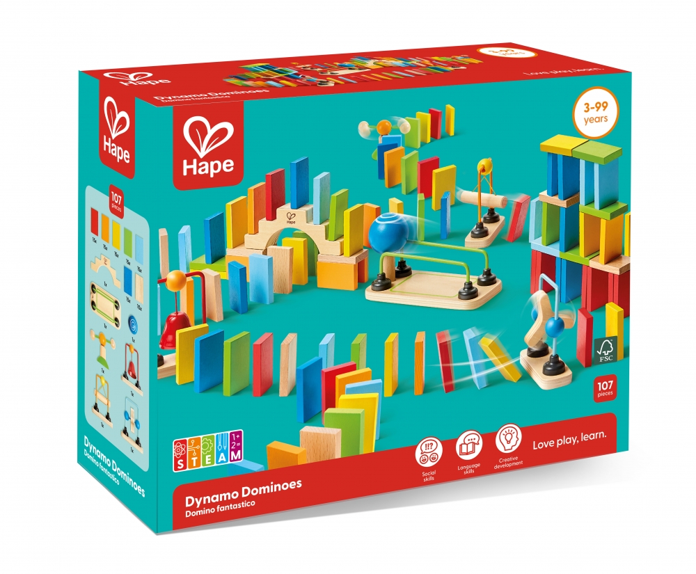 Дървен комплект, Hape, Домино, 107 части