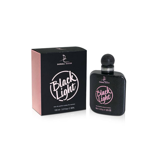 Black Light от колекцията на Dorall има тъмна, опияняваща страна, меко балансирана от свежи нотки на портокалов цвят и круша, подсилена от дървесни тонове на пачули