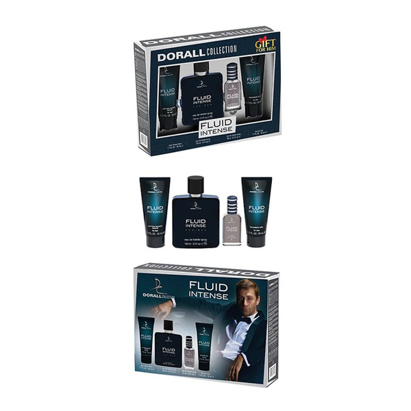 Dorall Collection Fluid Intense 4бр Подаръчен комплект за мъже който включва : Тоалетна вода 100 мл + Тоалетна вода 15мл + Душ гел 50 мл + Афтършейв 50 мл