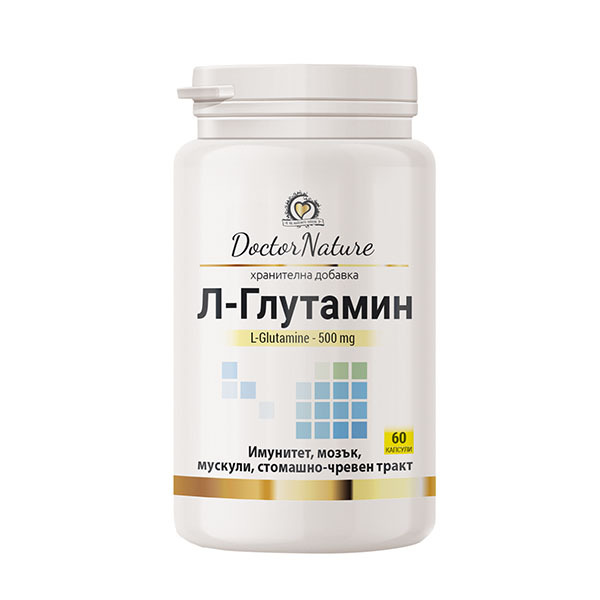 Глутаминът е най-разпространената свободна аминокиселина в човешкото тяло, съставлявайки около 50 до 60 процента от аминокиселинния фонд на мускулите. Той регулира киселинния и базов метаболизъм. Около 30 - 35% от азота в кръвта се пренася с помощта на глутамин. Глутаминът служи за прекурсор на антиоксиданта глутатион, участва в гликогеногенезата, стимулира производството на цитрулин и глицин. „Обира“ излишния амоняк в тялото. Съществува под формата на два изомера, като в Dr. Nature L-Glutamine е в по-активната и с повече функции L-глутамин (другата е D-глутамин)