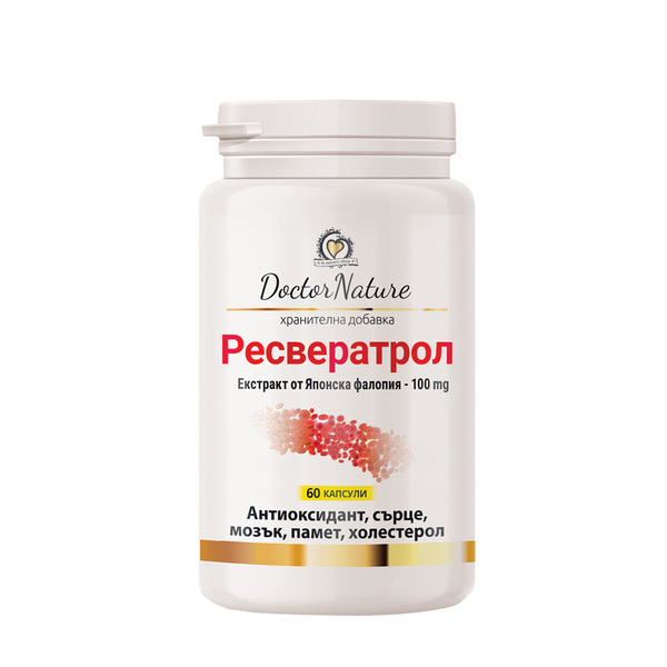 Dr. Nature Ресвератрол – за здраво сърце, нормални нива на холестерол и кръвно налягане, добро зрение и мозъчна функция. Ресвератролът е уникален продукт с изявено антиоксидантно, венотонично и кардипротективно действие.