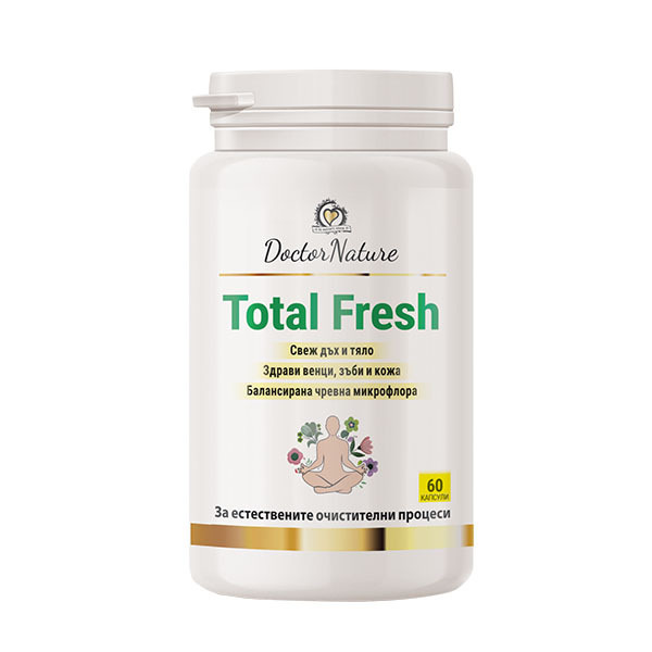 Dr. Nature Тotal fresh е уникална природна формула за естествено очистване на организма от токсини и вредни вещества, неутрализиране на неприятни миризми, последици от: нездравословно хранене, прием на пикантни храни, тютюнопушене, липса на физическа активност, дехидратация, работа в замърсена, токсична среда, повишен стрес, парадонтални проблеми, прием на определени медикаменти, старчески миризми в резултат на напредване на възрастта.