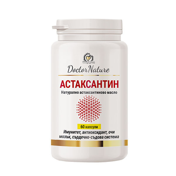 Астаксантинът е част от групата на каротеноидите и се получава от някои видове водорасли, скариди, крил и др. Именно астаксантинът придава розовия цвят на скаридите. Антиоксидантната му активност е изключително висока – днес се смята за един от най-мощните антиоксиданти, познати на човека, като наред с това е един от малкото, способни да достигнат до всяка човешка клетка, в това число успешно преминава през кръвно-мозъчната и кръвно-ретиналната бариери, недостъпни за голяма част от другите антиоксиданти и активни вещества. В резултат на това, приемът на астаксантин предоставя изключителна защита и подкрепа на мозъка, очите, нервната система. Благодарение на уникалните си молекулярни липофилни и хидрофилни свойства, той обхваща и защитава всяка част на клетката. Астаксантинът на Dr. Nature съдържа естествено астаксантиново масло, добито от сладководни водорасли Haematoccus pluvialis, за разлика от много хранителни добавки със синтетичен астаксантин, които имат само около 30 % от антиоксидантния капацитет на натуралния астаксантин.Има изключително висока бионаличност и се усвоява идеално от тялото. За разлика от други антиоксиданти като бета каротин, зеаксантин, витамин Е, С, D и селен, астаксантинът никога не става про-окислител в организма. Наред с това оказва мощно противовъзпалително действие, забавя процесите на стареене на клетъчно ниво, подкрепя имунитета, намалява нивата на холестерола, стабилизира сърдечно-съдовата система и кръвното налягане, подпомага фнкциите на стомаха.
