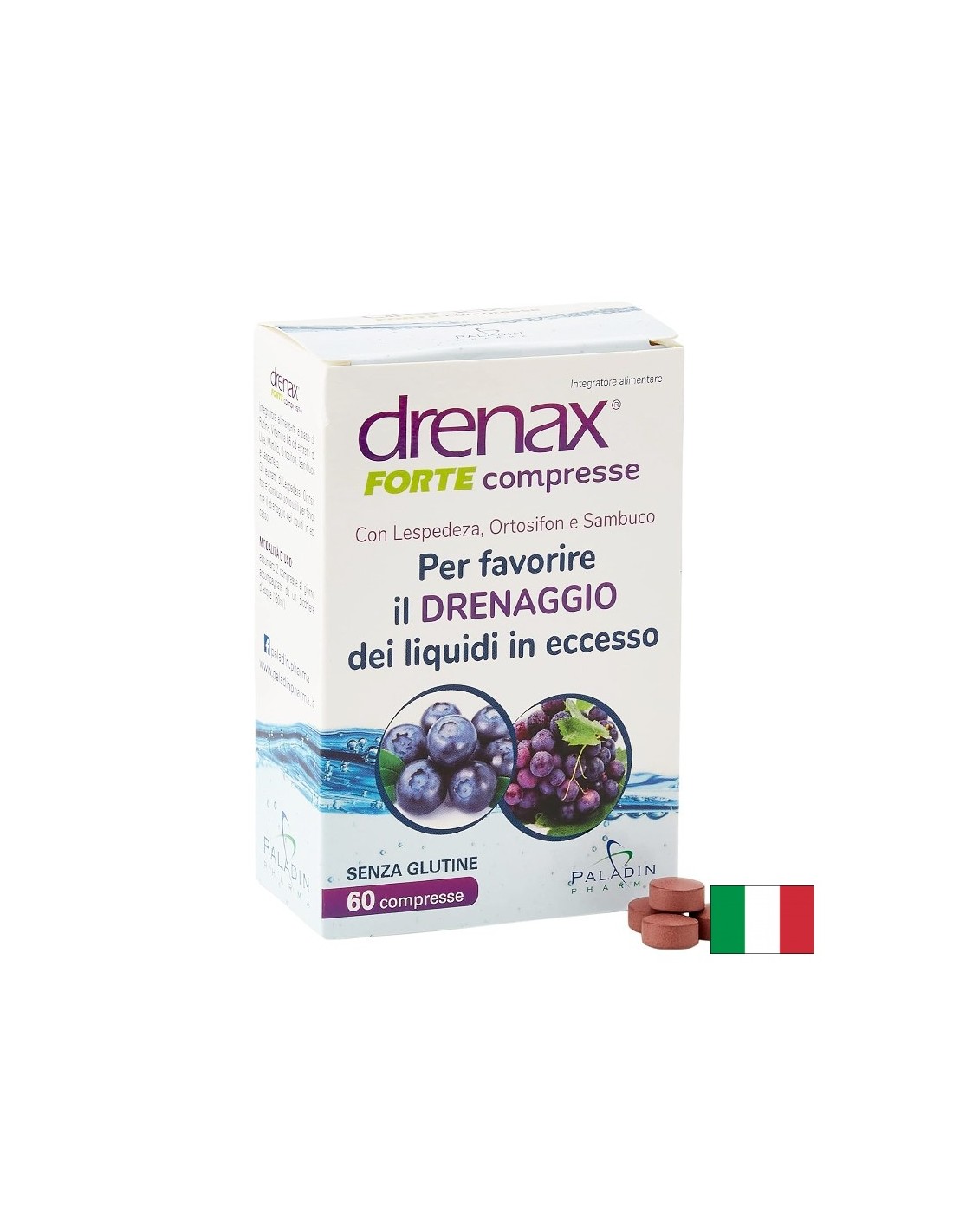 Drenax® Forte Paladin Pharma е натурална формула против задържане на течности, базирана на екстракти от леспедеза, черен бъз, гроздово семе, ортосифон и синя боровинка. Допълнително обогатеният комплекс с рутин и витамин B6 подпомага поддържането на здравословно телесно тегло и нормалния обем на течности в организма.