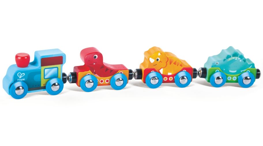 Дървен комплект, Hape, Цветно приключенско влакче, Динозаври