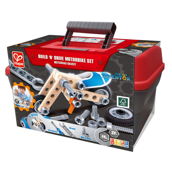 Дървен комплект, Hape, Млад изобретател, Мотоциклет, 34 части