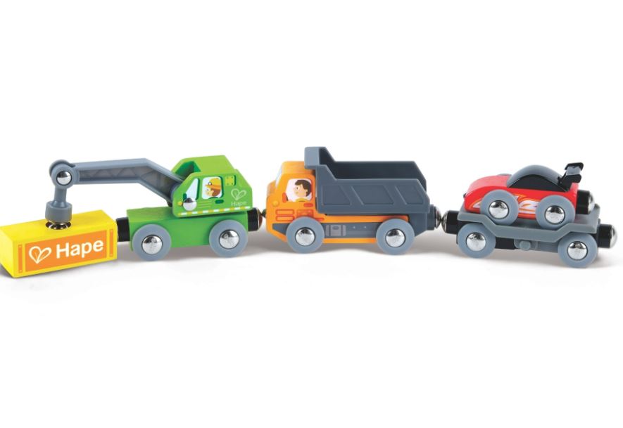 Дървен комплект, Hape, Влакче с цветни строителни машини