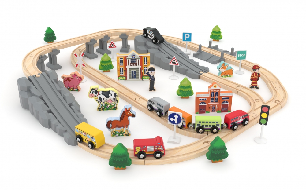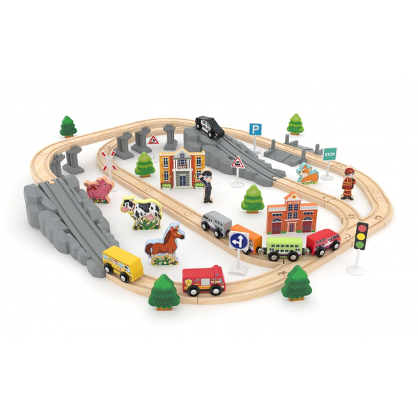 Дървен мега комплект влакчета, J′adore, Спасителен влак, 70 части