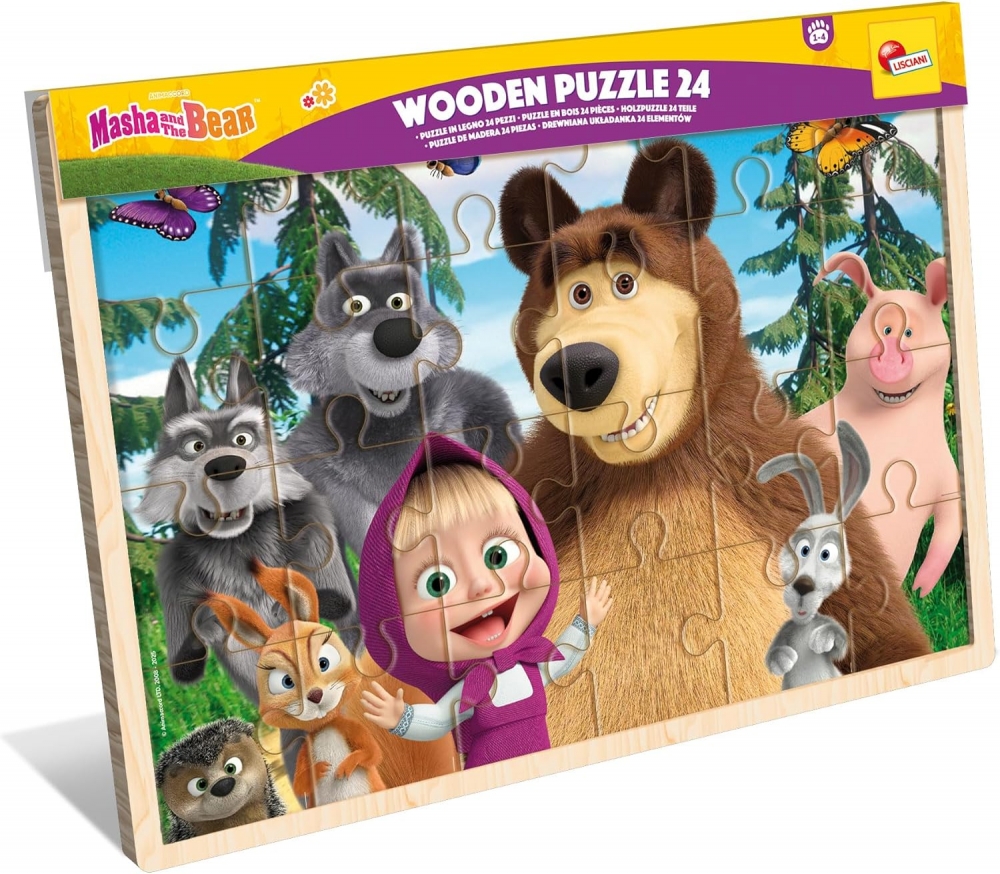 Дървен пъзел, Lisciani, Маша и Мечока, 24 части