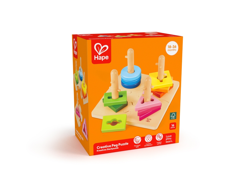 Дървен комплект, Hape, Пъзел с фигури за нанизване