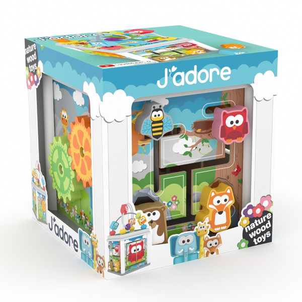 Дървен занимателен куб за игра с активности, J′adore
