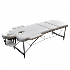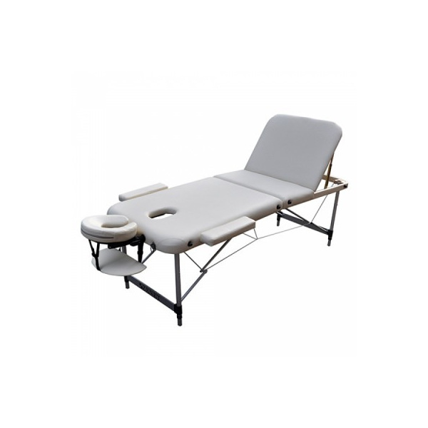 Професионална трисекторна алуминиева масажна маса, идеална за масажи, физиотерапия и козметични процедури. Стабилна конструкция със заоблени и подсилени ъгли, осигуряваща комфорт и безопасност.
