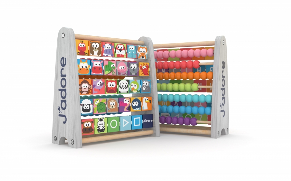 Дървено двустранно сметало с букви и форми, J′adore