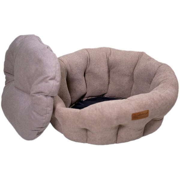 Dubex Cortina Earth Bound е елегантно легло в земни тонове с обгръщащ борд (bolster), което осигурява стабилна опора на главата и усещане за сигурност. Моделът съчетава изчистен дизайн и висок комфорт – подходящ за котки и за кучета от дребни до средни породи.